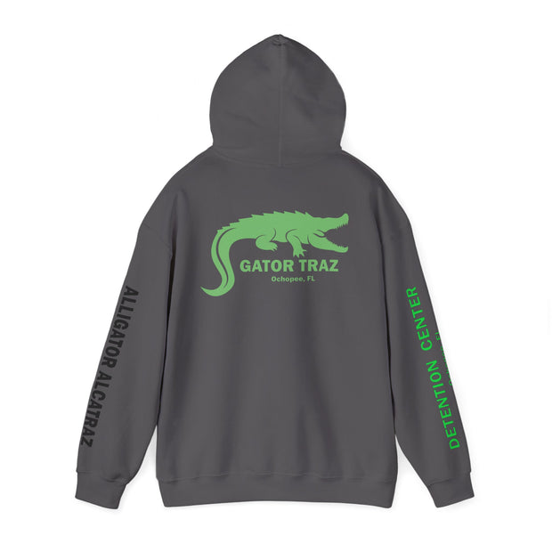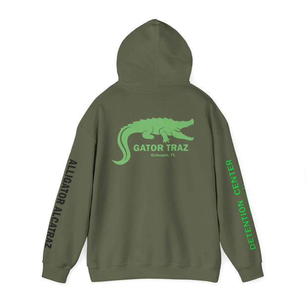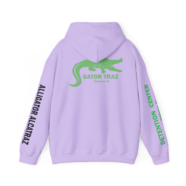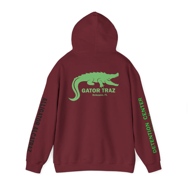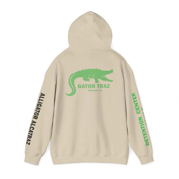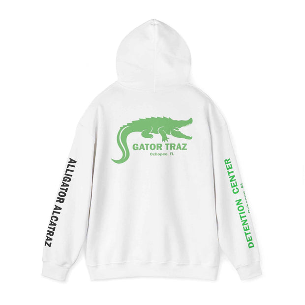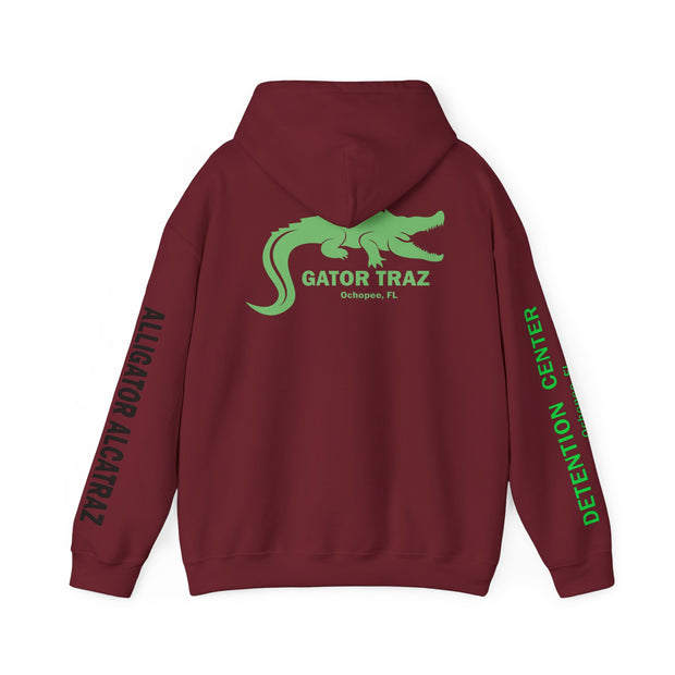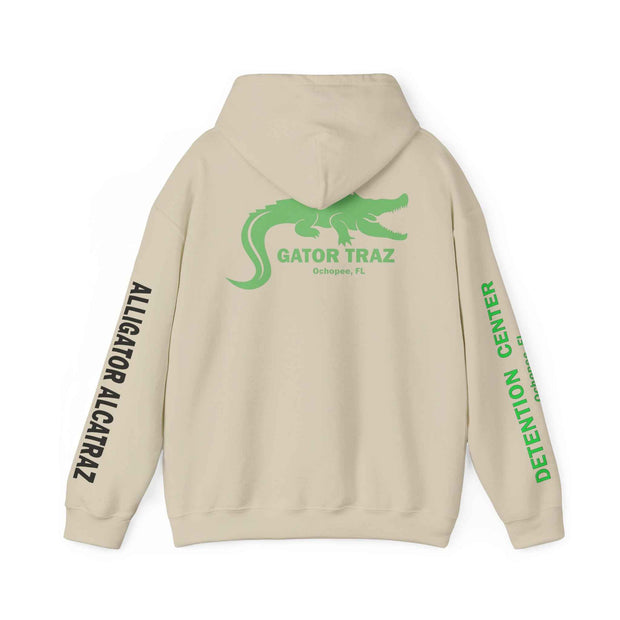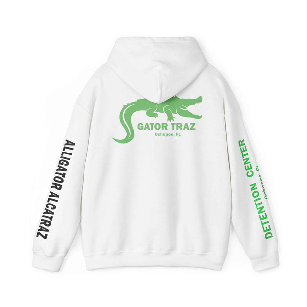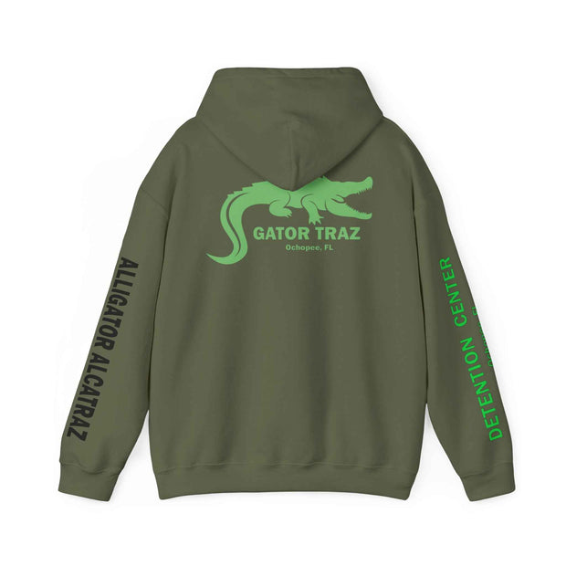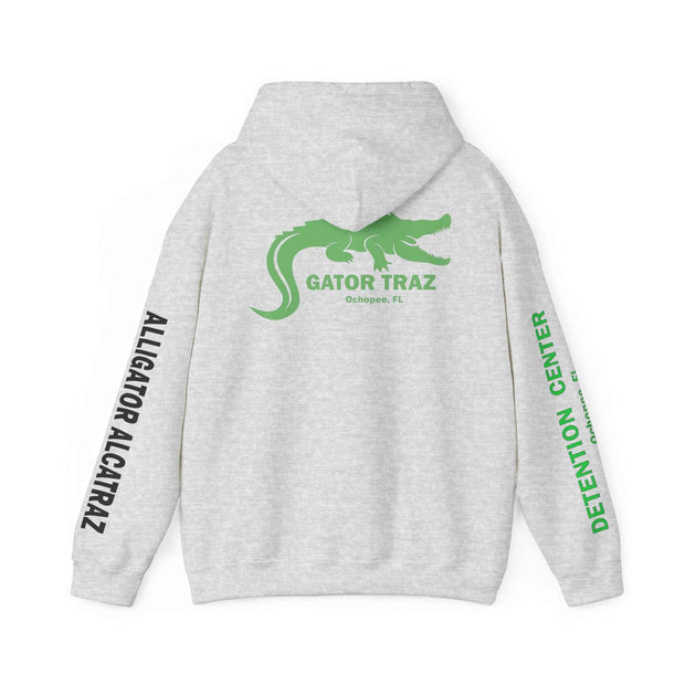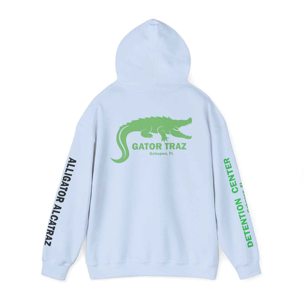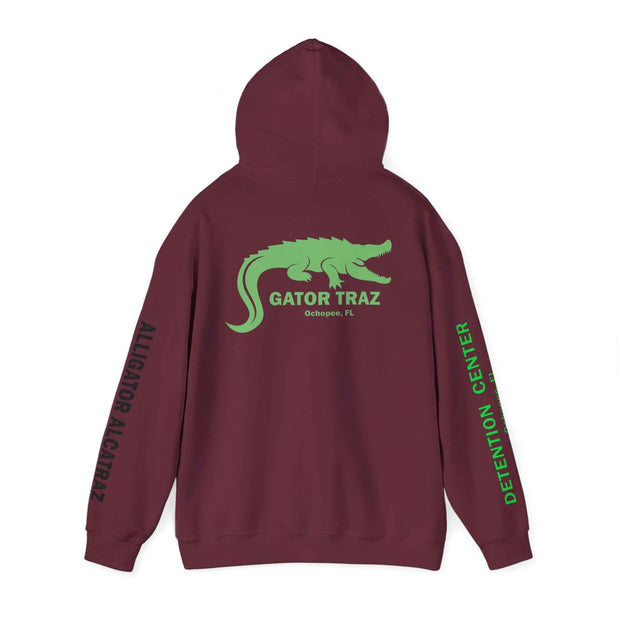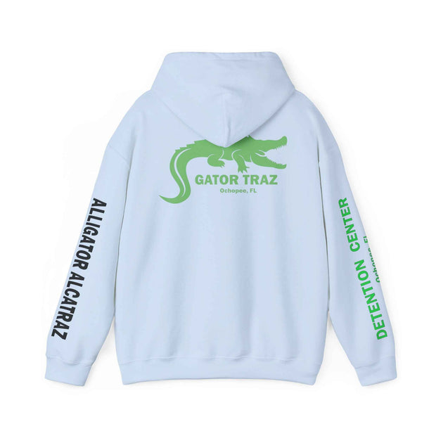 This hoodie isn’t just about great style. It's crafted from a premium heavy blend fabric that offers durability and warmth, making it suitable for various weather conditions. The eye-catching Alligator Alcatraz print adds a unique flair, ensuring you stand out in any crowd.