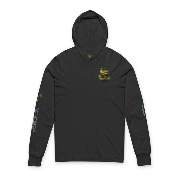 Alligator Alcatraz Grey Unisex Hooded. This unique vegan gator casual wear is designed for those who appreciate both comfort and ethical choices in their wardrobe. Made with the utmost care, our unisex hooded sweatshirt offers a full package of style, versatility, and sustainability.