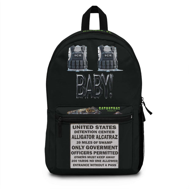 ***Don’t wait! Supplies are limited; grab your ICE ICE BABY, Alligator Alcatraz Sign backpack now and elevate your backpack game!***