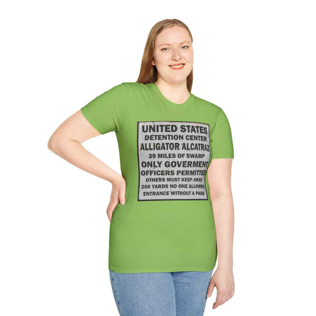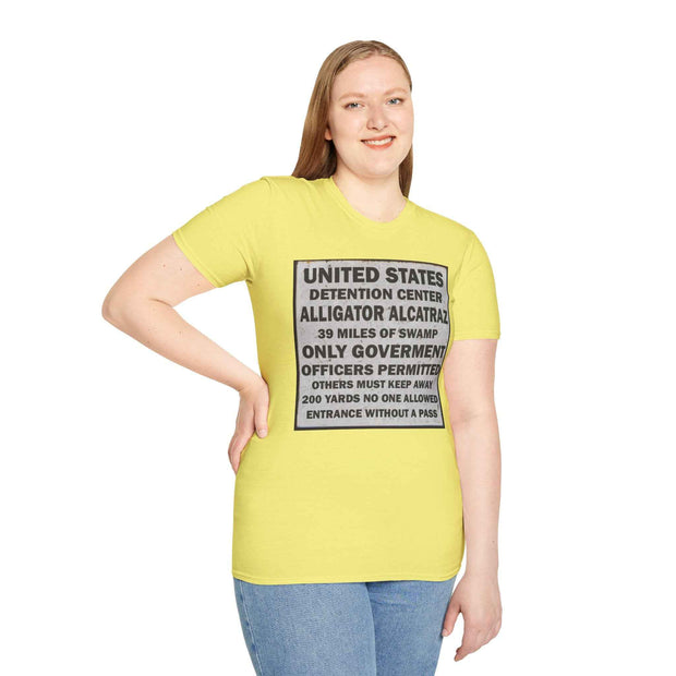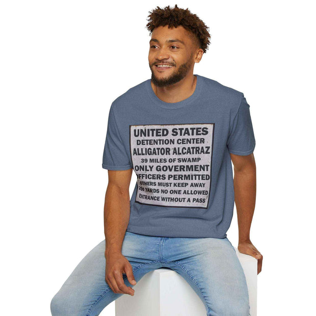 Grab your Unisex Alligator Alcatraz Sign Tee now and let your style do the talking!