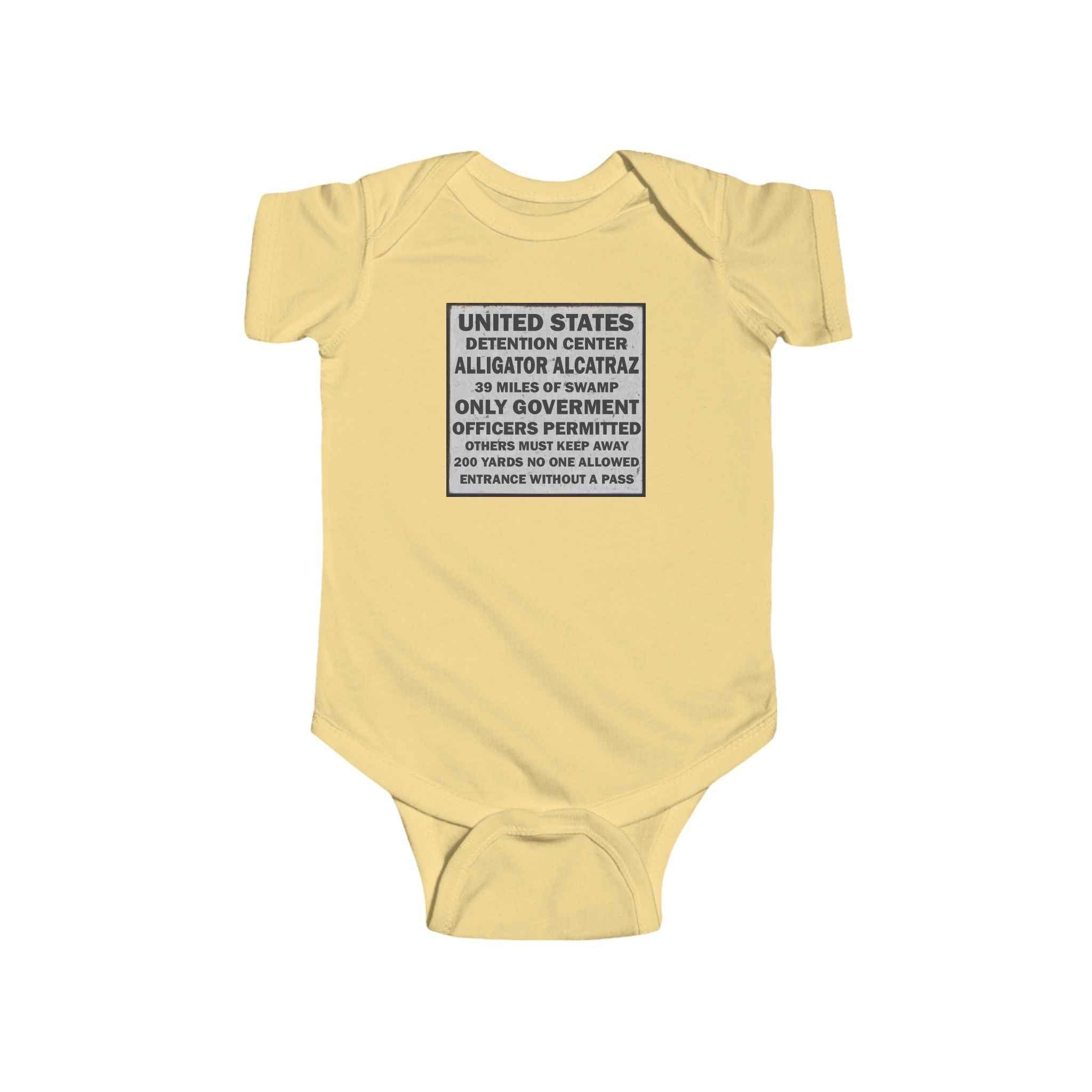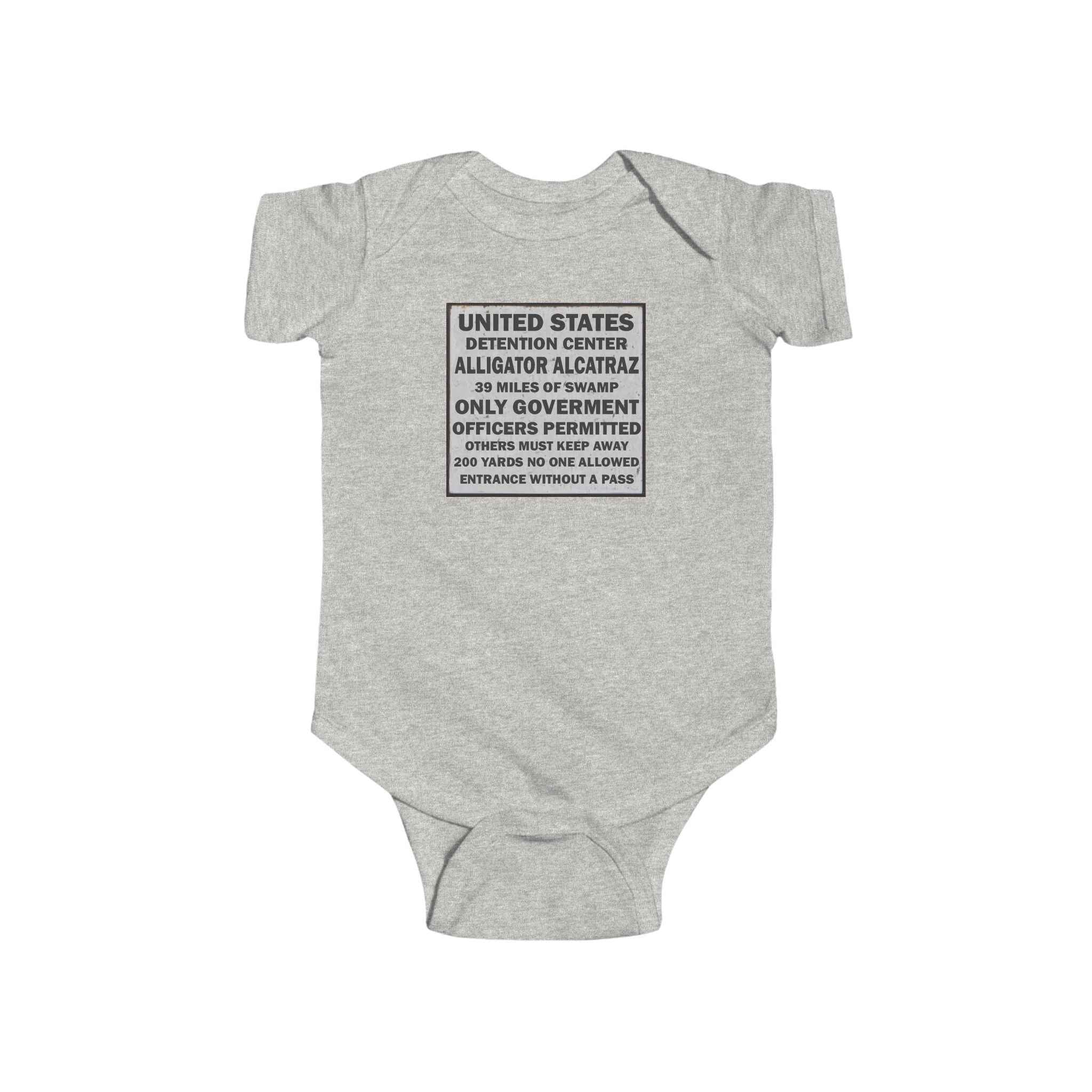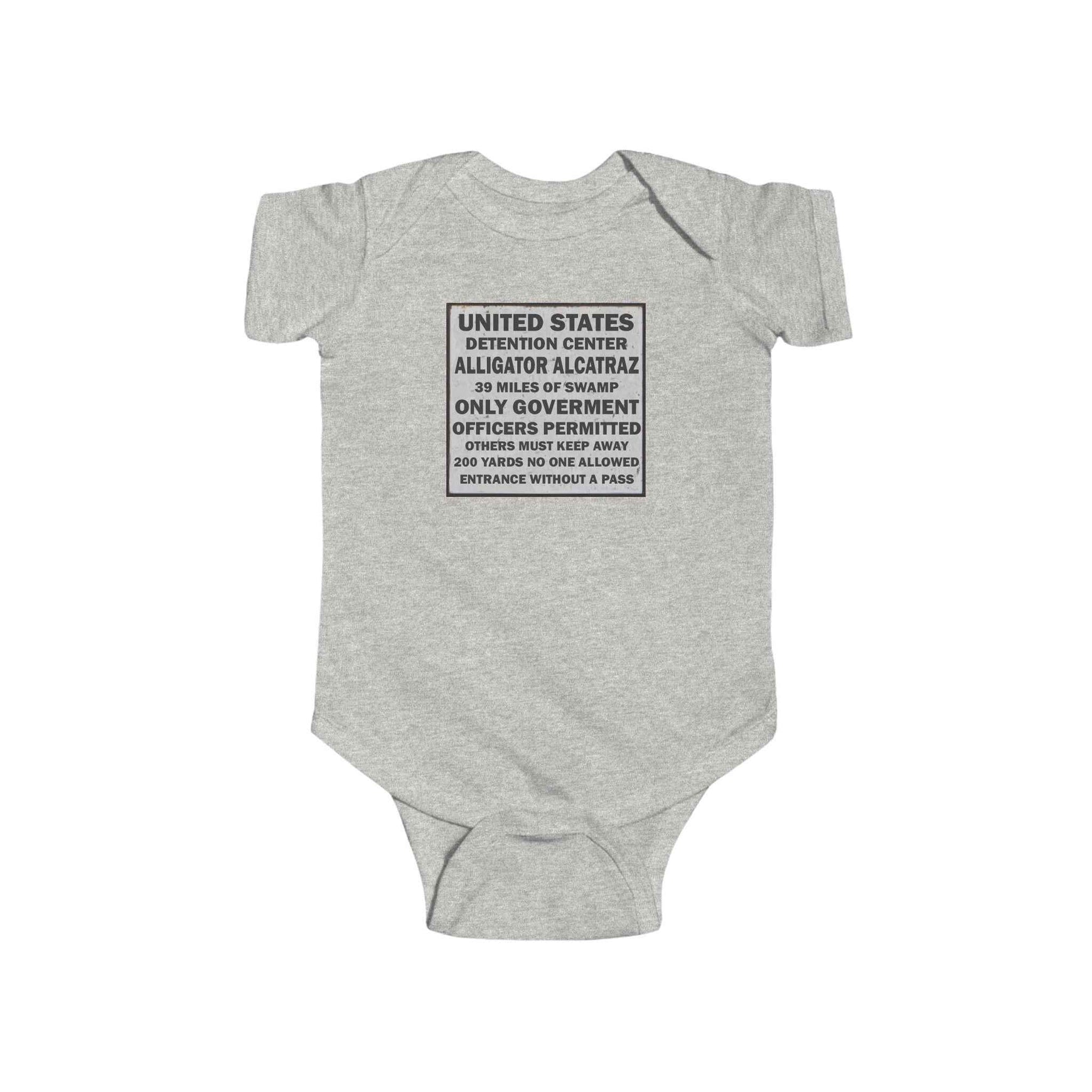 Welcome to the playful world of our Alligator Alcatraz Merch designed to bring a touch of whimsy and fun to your little one’s wardrobe. This trendy Alcatraz bodysuit is not just an outfit; it's a statement piece that embodies both style and comfort. Perfect for outings, family photos, or even cozy days at home, this onesie is sure to make your baby the center of attention.